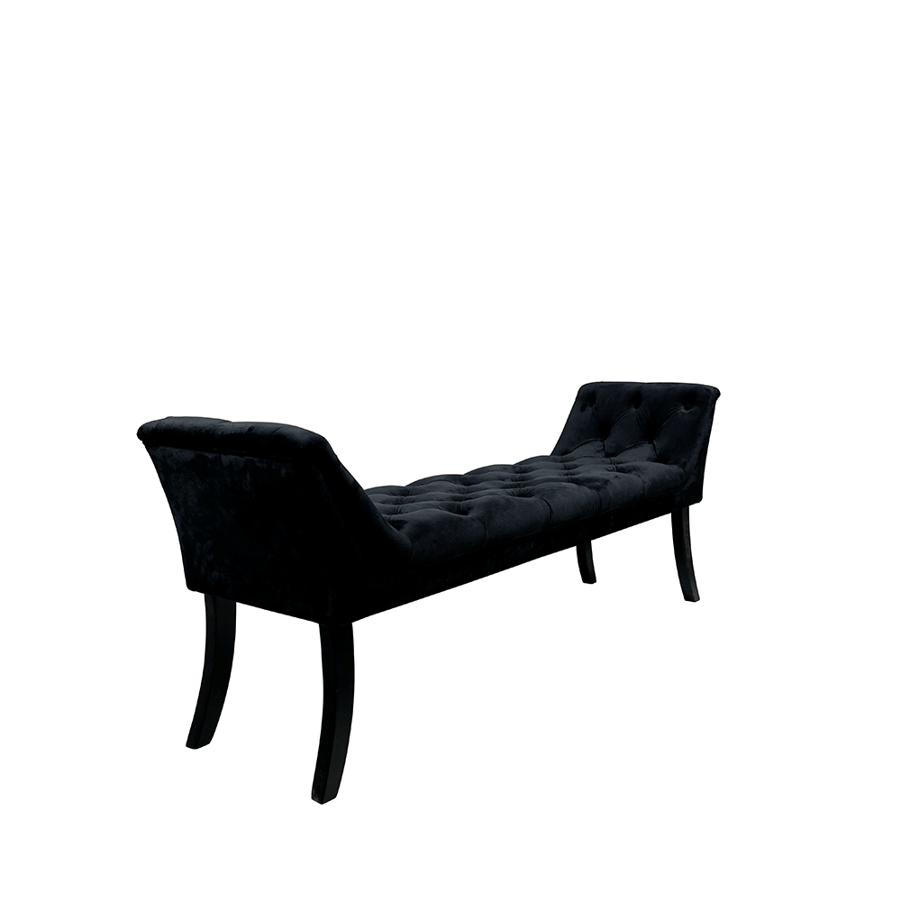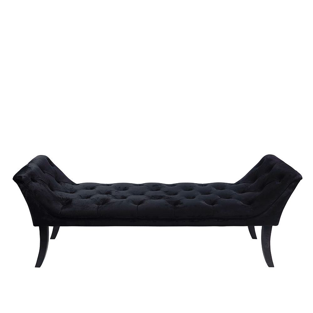 Bancă de design, ţesătură de catifea neagră / lemn, HEMY TYP 1