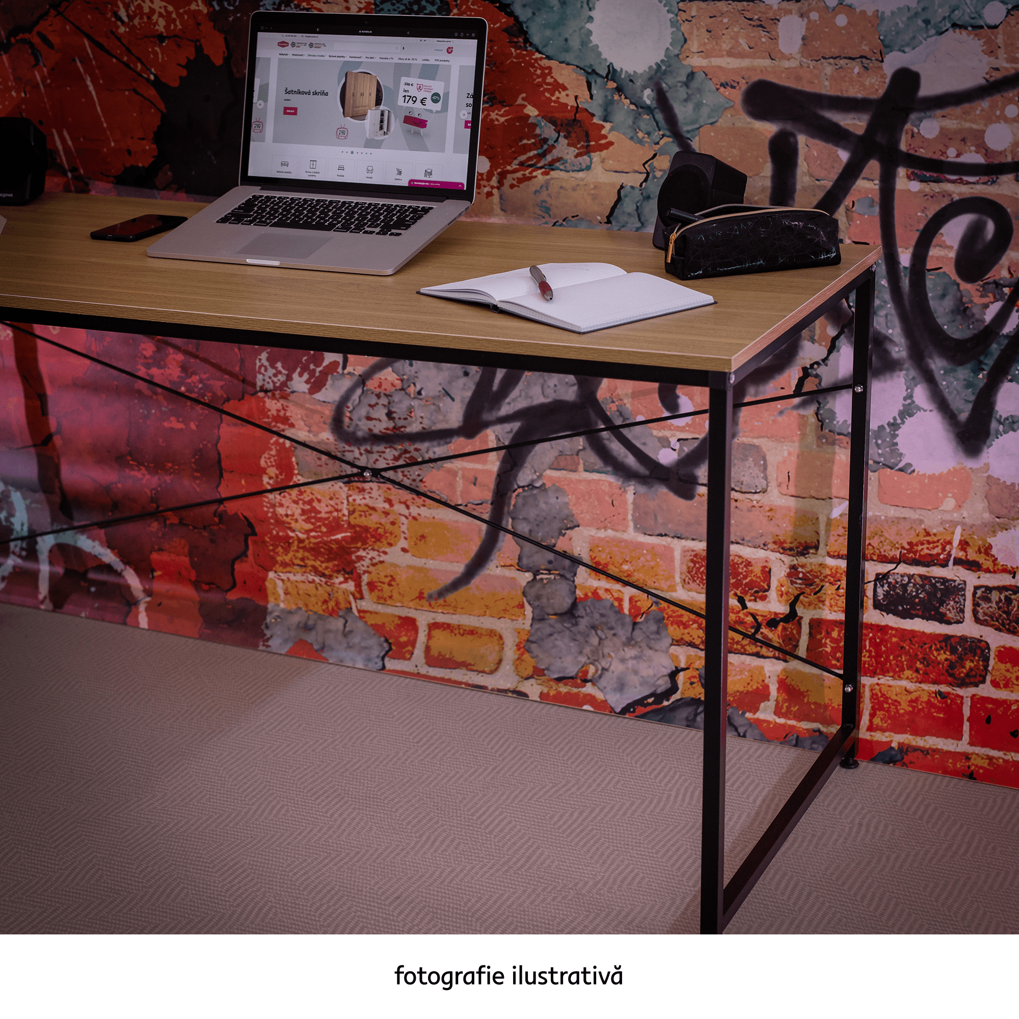 Birou, stejar/negru, 120×60 cm, MELLORA