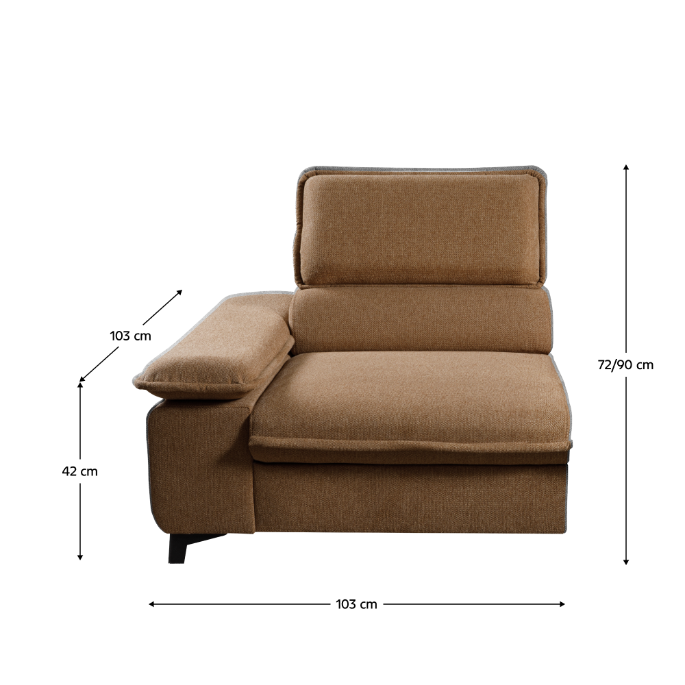 Canapea cu 1 loc, cu spătar, material maro, stânga, MANTY 1 1BL