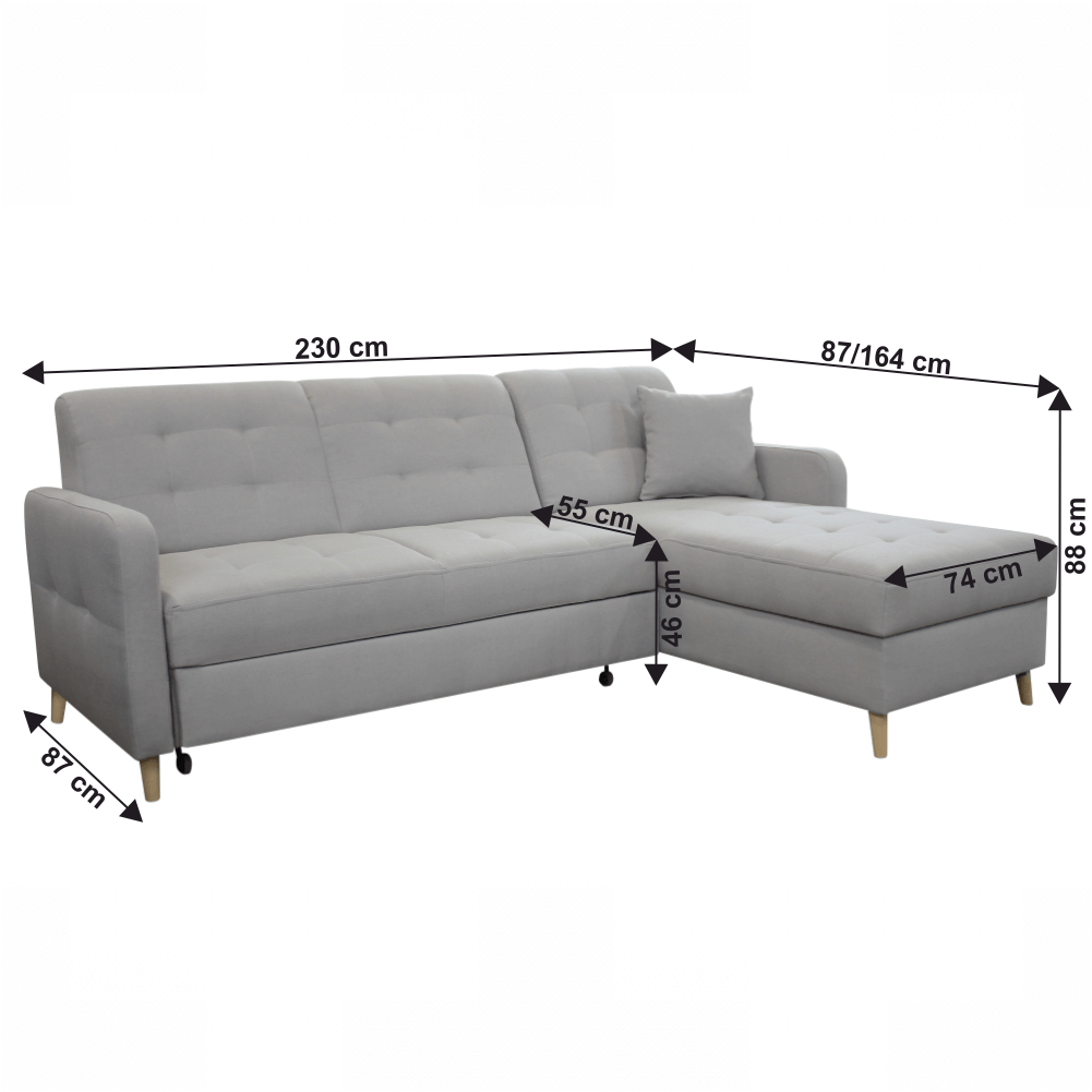 Dimensiuni (LxGxÎ): 230×87/164×88 cm