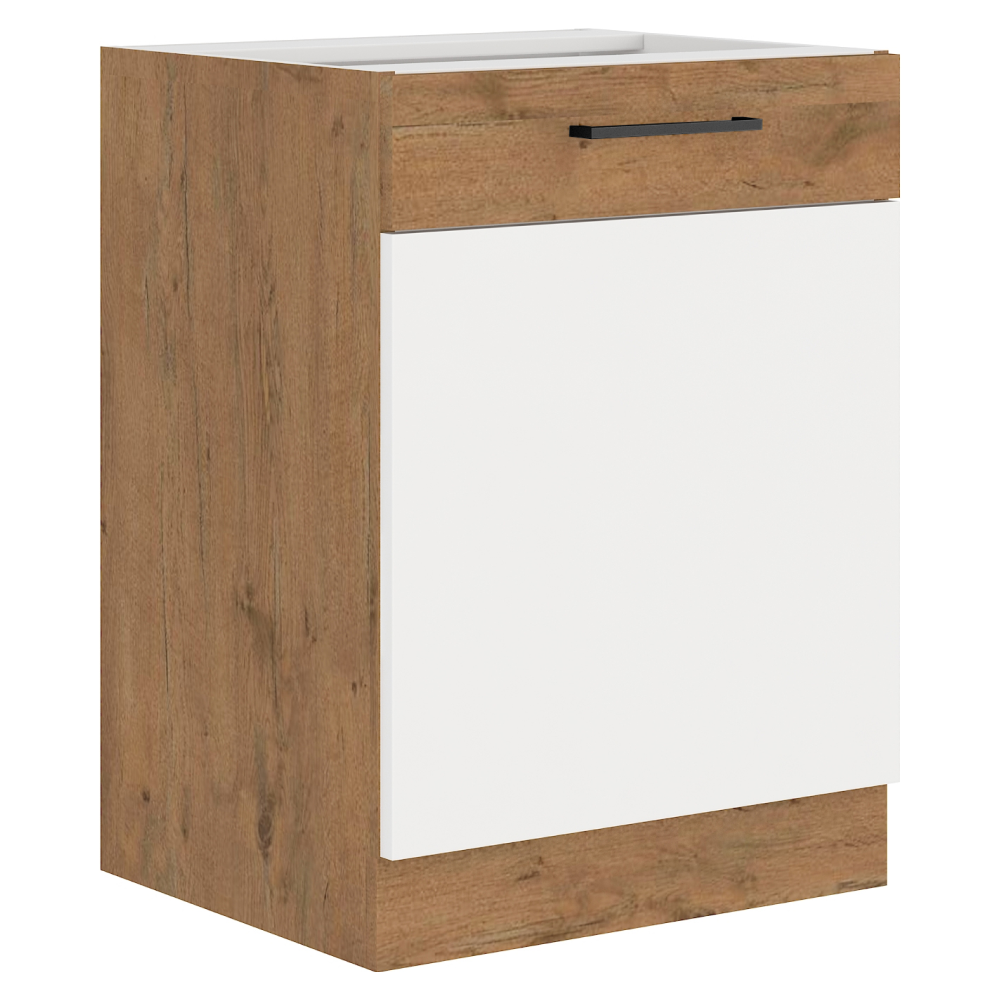 Cabinet inferior, alb extra lucios HG/stejar Lancelot, VEGA D60 1F BB