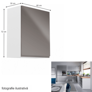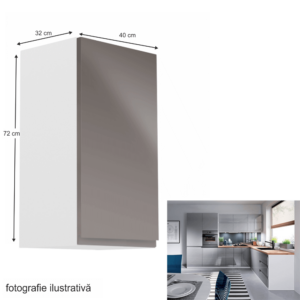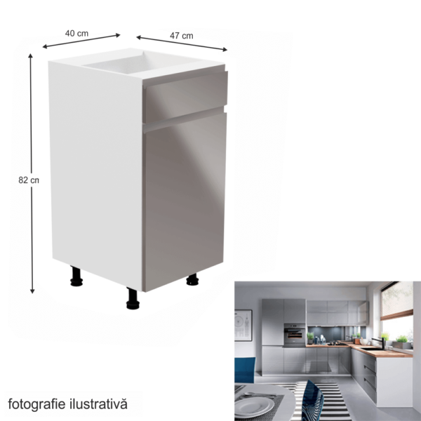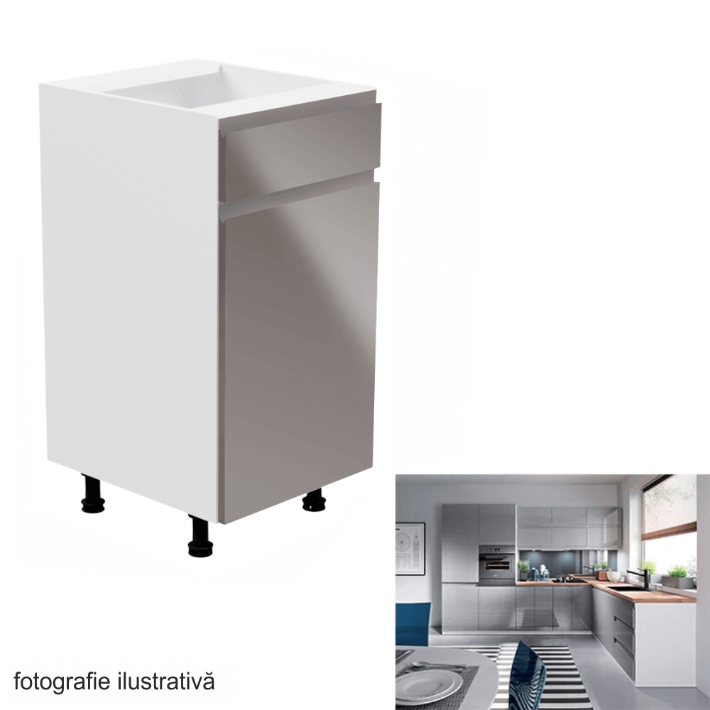 Dulap inferior, alb/gri extra lucios, dreapta, AURORA D40S1