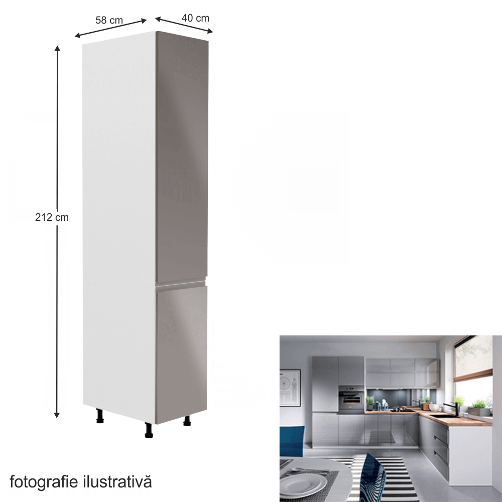 Dulap pentru alimente, alb/gri cu luciu extra ridicat, de dreapta, AURORA D40SP