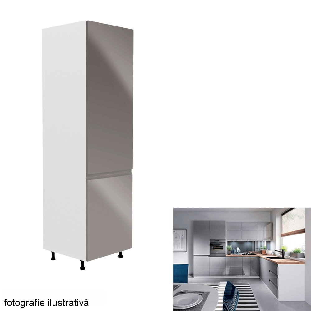 Dulap pentru frigider, alb/gri extra lucios, dreapta, AURORA D60ZL