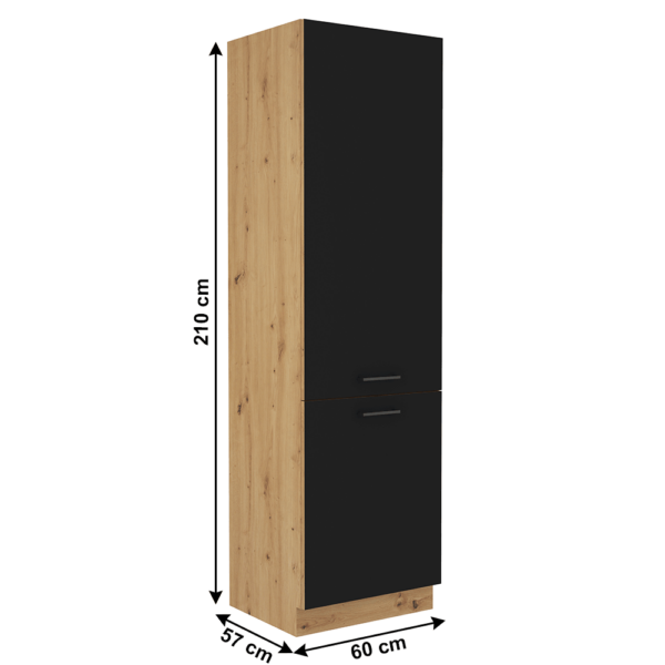 Dulap pentru frigider încorporat, stejar artizan/ negru mat, MONRO 60 LO-210 2F