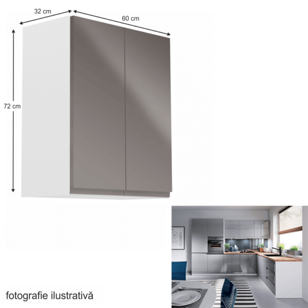 Dulap superior, alb/gri extra lucios, AURORA G602F