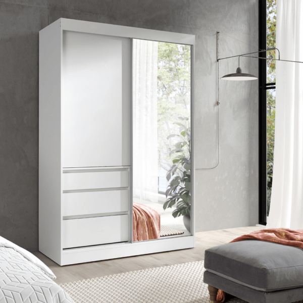 Dulap cu uşi glisante, alb, 140, ROMUALDA
