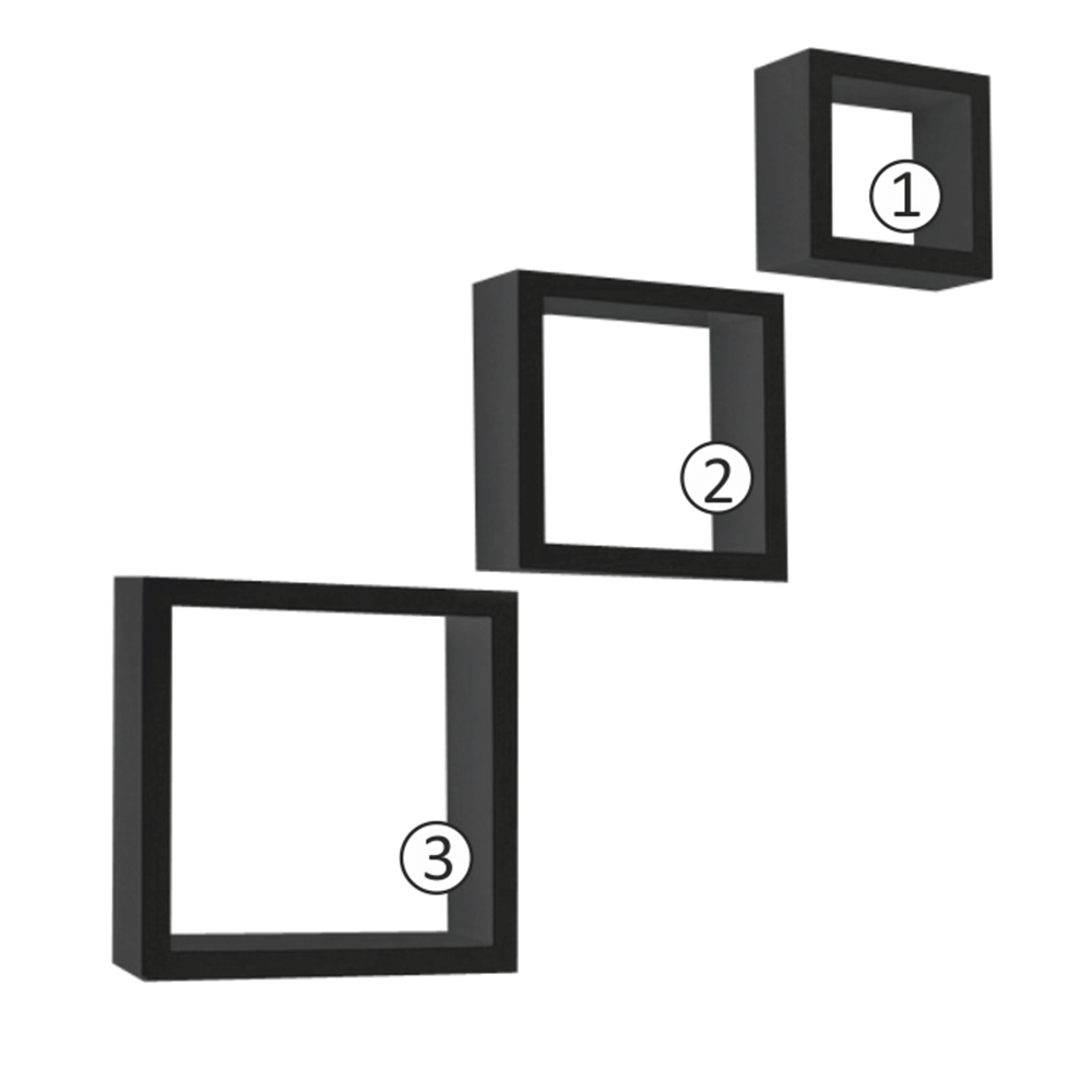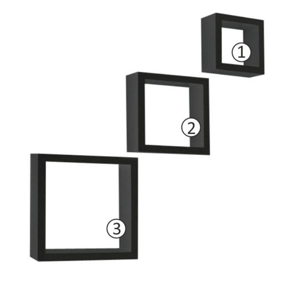 Poliţe, 3 buc., negru, KVADRO NEW