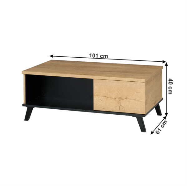 Măsuţă de cafea, stejar lefkas/negru, SIRAN TYP 8