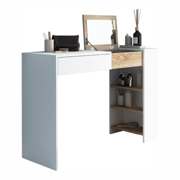 Măsuţă de toaletă/masă de scris, alb/stejar sonoma, ELIS