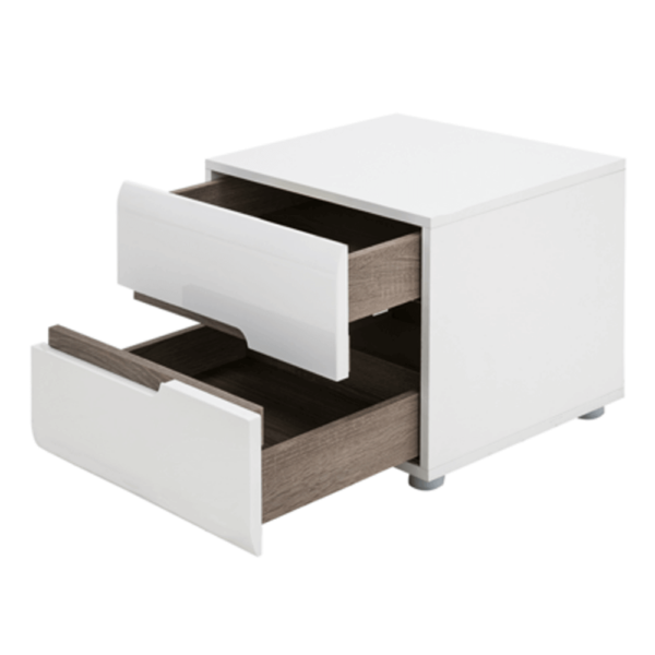 Noptieră, albă extra luciu ridicat HG/stejar sonoma truflu închis, LYNATET TYP 96