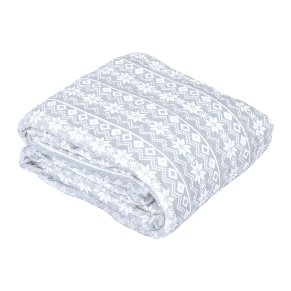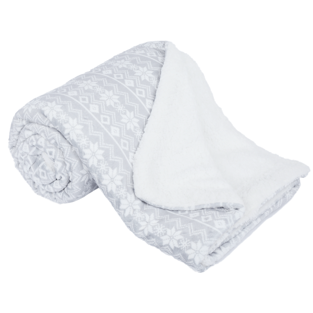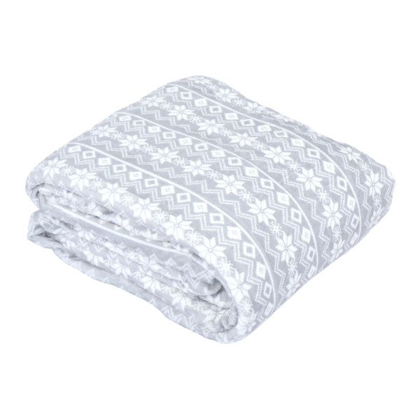 Pătură cu două feţe imitaţie miel, gri/alb/model, 150×200, MARITA