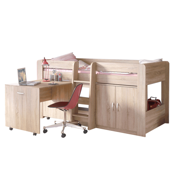 Include masă PC, scări, dulap cu raft şi somieră