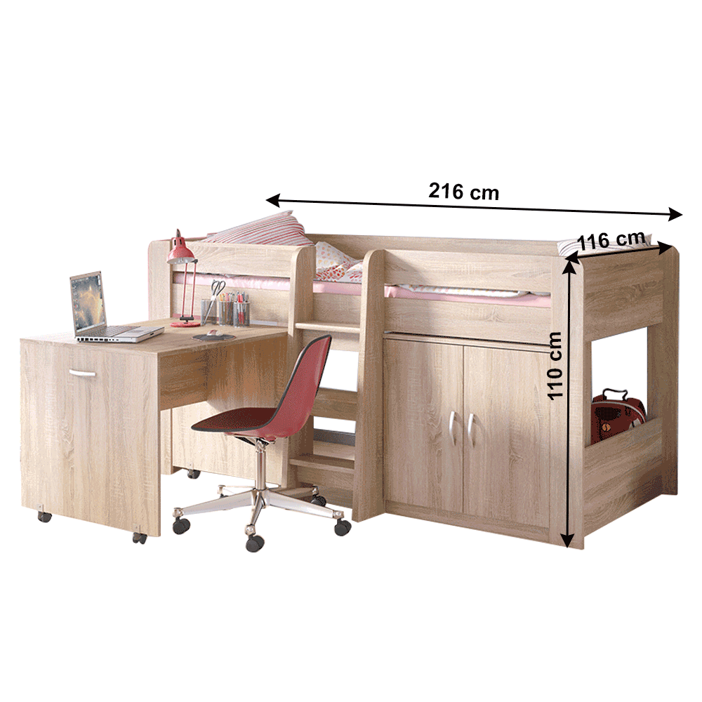 Pat combinat pentru camera copiilor, stejar sonoma, FANY