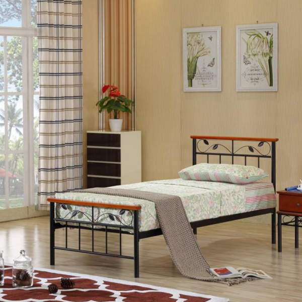 Cadru pat cu somieră lamelară, lemn cireş/metal, 90×200, MORENA NEW