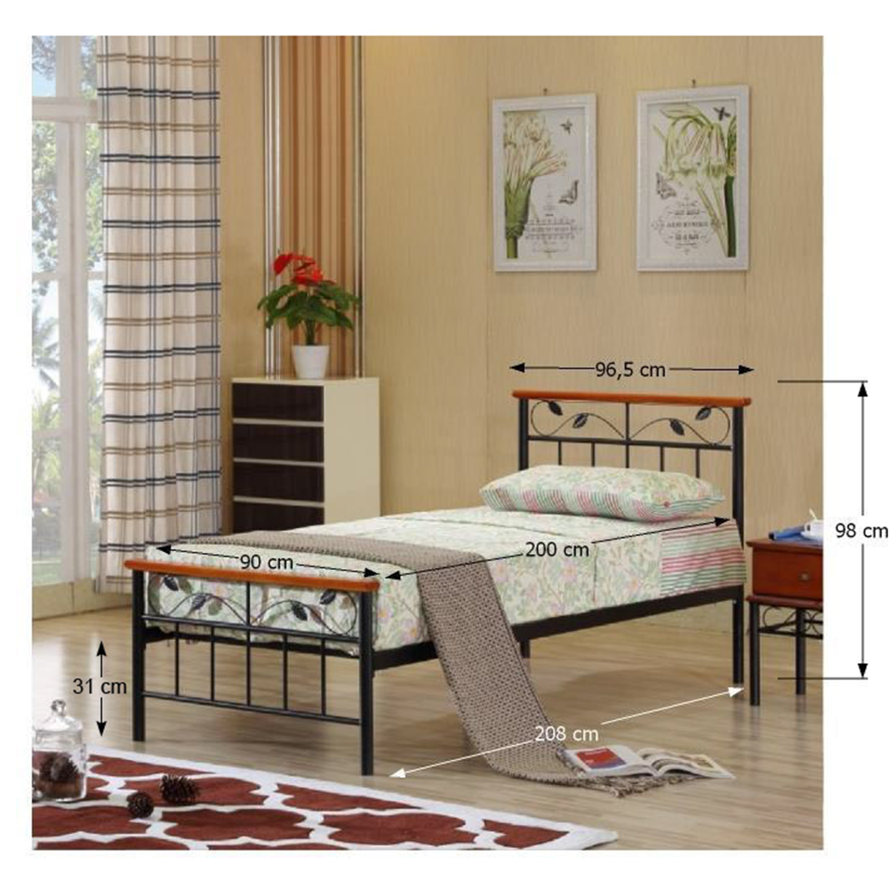Cadru pat din metal cu somieră lamelară, dimensiuni cadru (lxLxh): 96,5x208x98 cm, suprafaţă de dormit 90×200 cm.