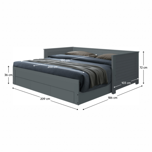 Dimensiunile patului după deschidere (lxAxh): 180×200 cm