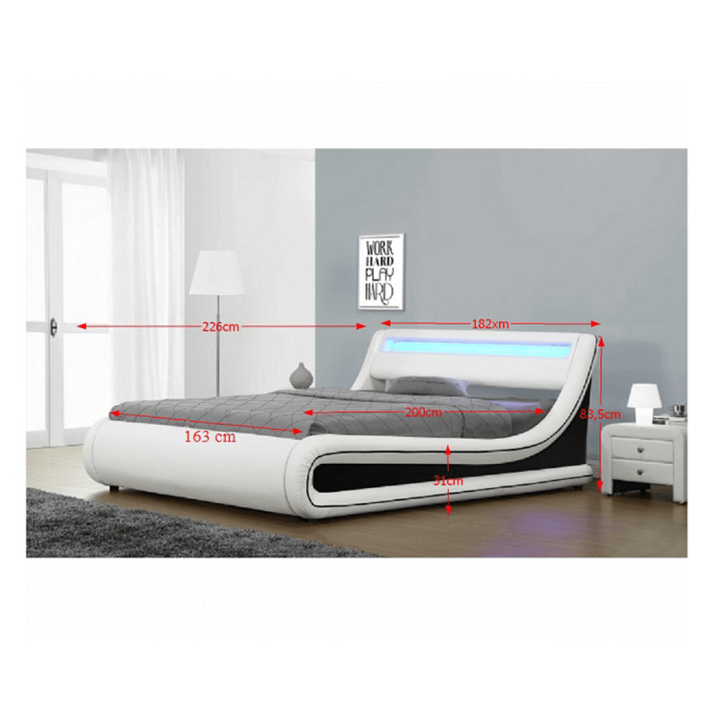 Pat matrimonial cu RGB LED iluminare, alb/negru, 160×200, MANILA NEW