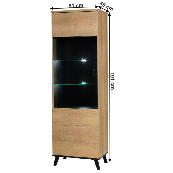 Vitrină, stejar lefkas/negru, SIRAN TYP 2